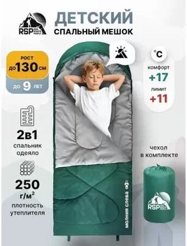 Спальный мешок RSP Outdoors Happy 250 R (зеленый, 160*65см, молния справа)